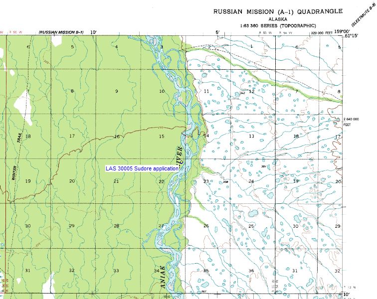 GEOGRAPHIC LOCATION: Located on the West side of the Aniak River approximately 7 miles down river from the base level of Timber Creek.