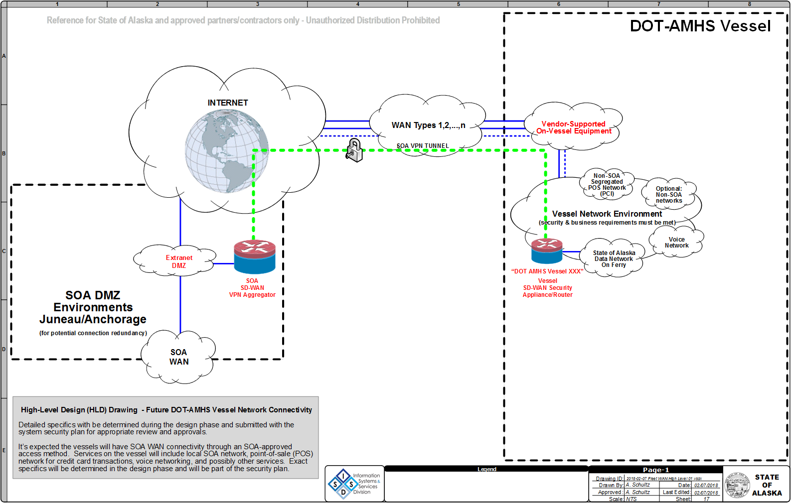 The State of Alaska, Department of Transportation & Public Facilities, Alaska Marine Highway System (AMHS) is soliciting proposals from qualified vendors to replace the existing VSAT Satellite Service contract and provide WAN Services - Long Haul Wan Circuit Connections, on-going maintenance for data, radio, voice and video services and mobile device connectivity services for the AMHS ferry fleet and terminals.